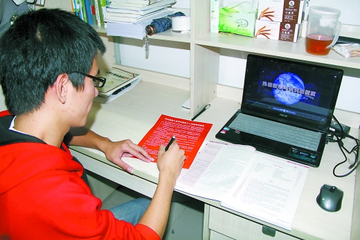 魏开阔老家在河南,每学期只回家一次,因此大多时间都留在学校,时间一大把。而电脑则是他消磨时光的最好伙伴。魏开阔说,在大一期间他看完了美剧《越狱》和多部美国大片。最难忘的一次是,一天在寝室里花9个小时看完了《魔戒》三部曲。